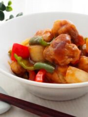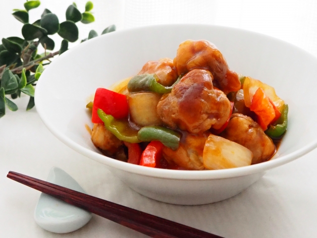 豚肉をカリっと香ばしく揚げた酸味と甘味がバランスの良い酢豚です。